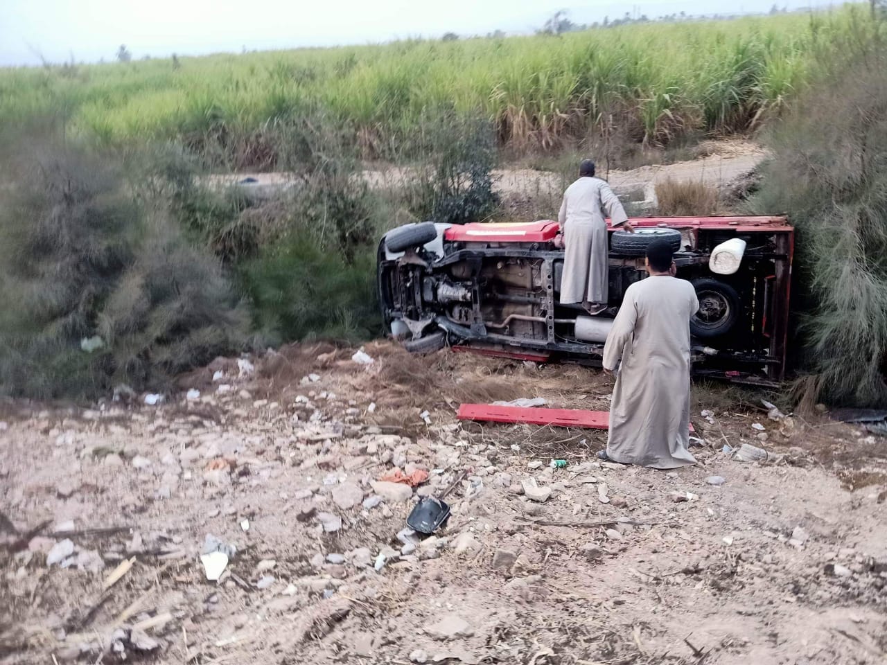 كانت البداية عندما تلقى اللواء إيهاب طه، مساعد وزير الداخلية، مدير أمن قنا، إخطارًا من غرفة العمليات يفيد بورود بلاغ من هيئة الإسعاف بوقوع حادث انقلاب سيارة تريلا محملة أسمدة وإصابة سائقها بالقرب من قرية القناوية.
