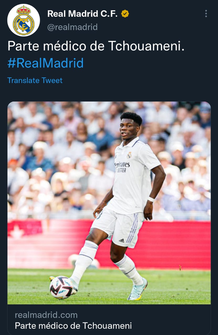وأضاف: "أظهرت الفحوصات الطبية التي أجريت اليوم على أوريلين تشواميني، معاناته من إصابة في العضلة النعلية بساقه اليسرى، وسيتم تقييم تطور حالته في الأيام المقبلة".