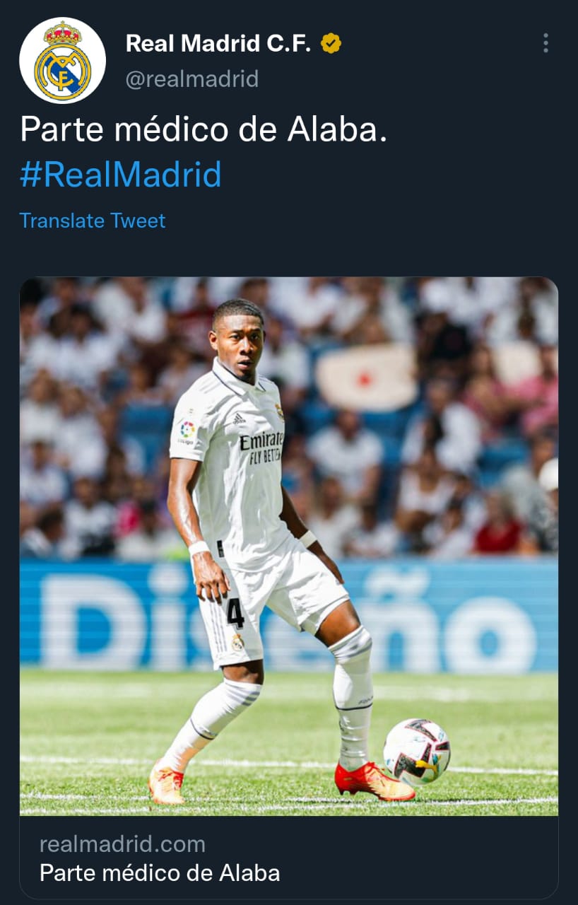 وقال الريال، في بيان رسمي: "أظهرت الفحوصات الطبية التي أجريت اليوم على لاعبنا ديفيد ألابا، معاناته من إصابة في العضلة النعلية بساقه اليمنى، وسيتم تقييم تطور حالته في الأيام المقبلة".