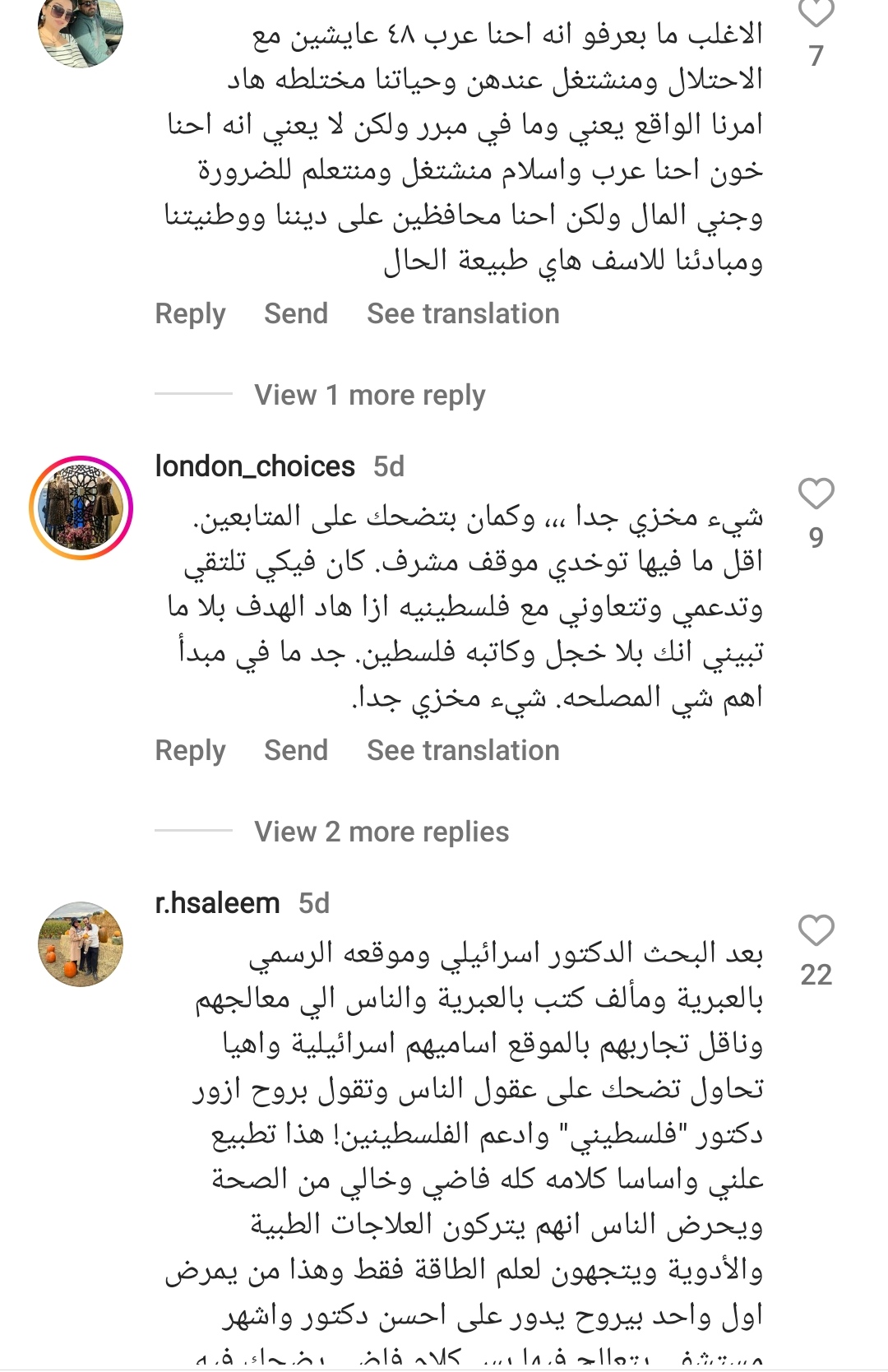 وقال متابع أخر :"شو بتسوي يا شمس بمستعمرة هرتسليا الصهيونية على أراضينا المحتلة؟ عيب عليكي. هذا اسمه تطبيع.. عاشت فلسطين".