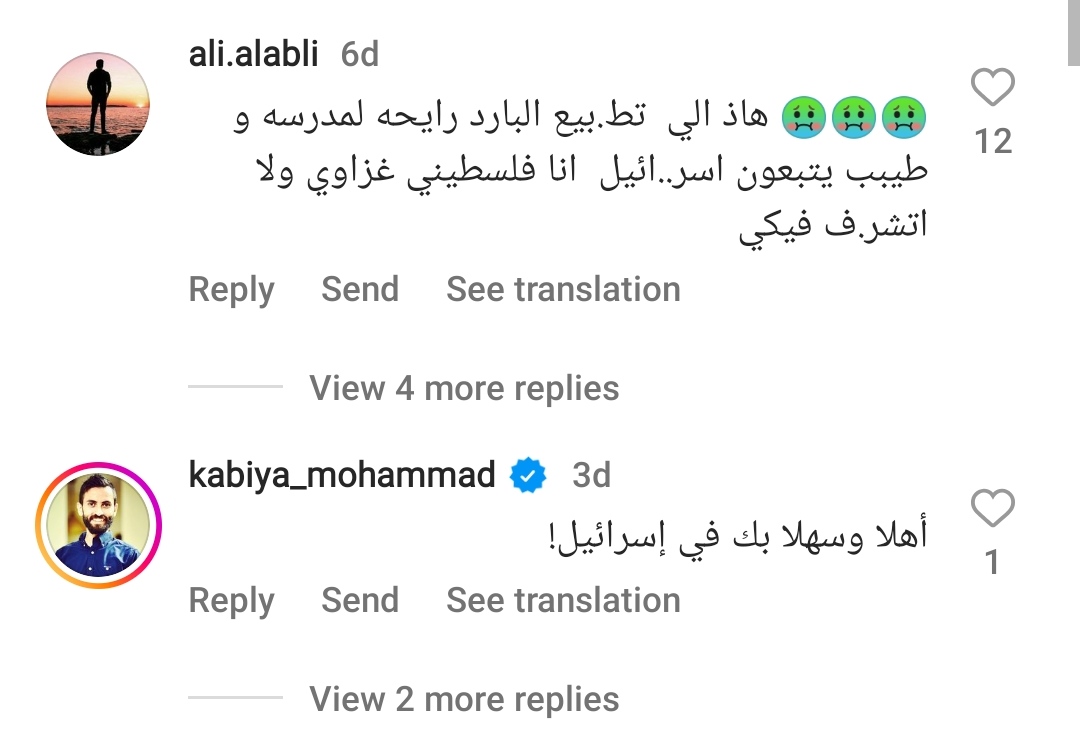 و عاتب متابع أخر شمس قائلا "هذا تطبيع واضح وشخصي، اي باسبور استخدمت ؟ الكويت لم تقم بأي اعتراف بإسرائيل بعد، فكيف تدخل مواطنه كويتيه الى اس....؟؟؟ خيبتي املنا فيك يا شمس، على الاقل فليبدأ الاعتراف اولا بين الحكومات قبل الافراد".