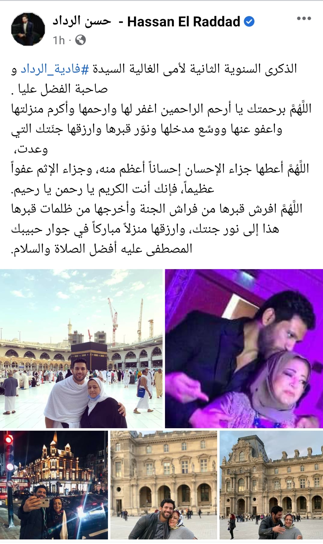 وعلق علي الصور قائلاً: "الذكرى السنوية الثانية لأمى الغالية السيدة فادية الرداد و صاحبة الفضل عليا".