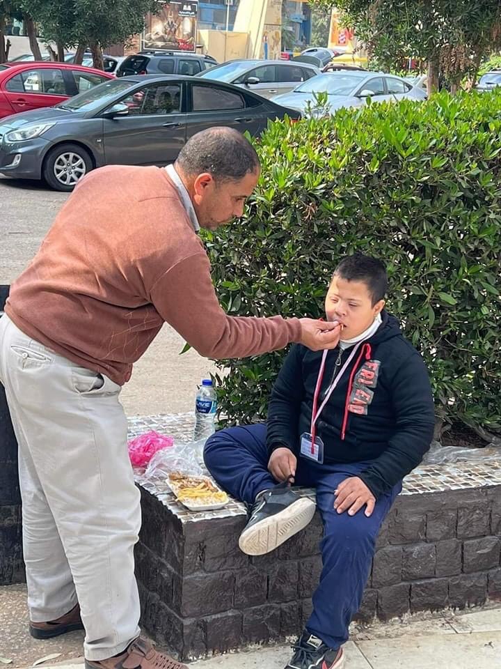تداول رواد مواقع التواصل الاجتماعي ، صورة لأحد مدرسي مدرسة التربية الفكرية بالدقهلية وهو يطعم طفل من ذوي الهمم لم يستطيع تناول طعامه بمفرده.