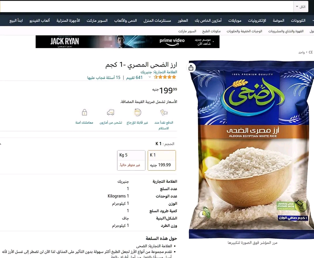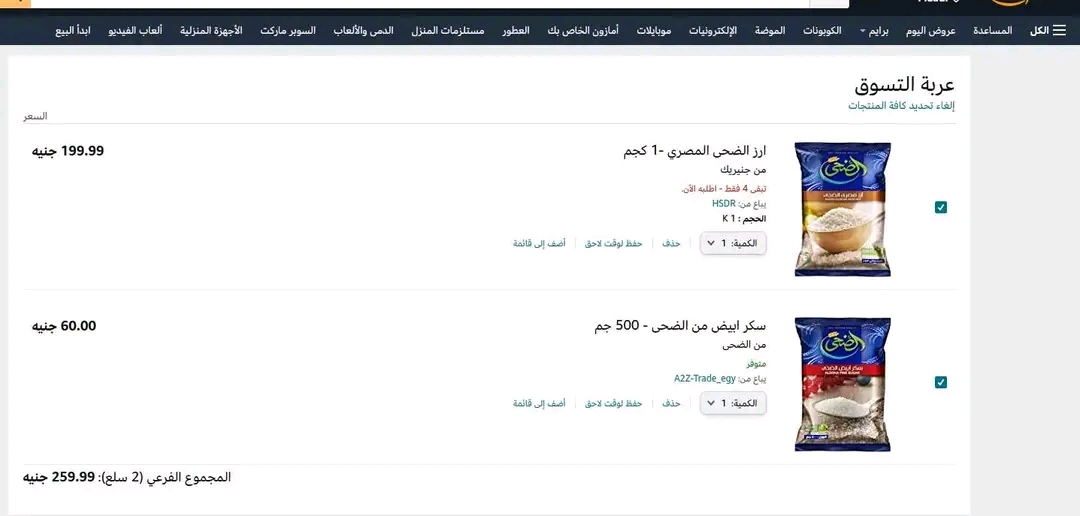 الأرز بـ 199 جنيها.. إرتفاع أسعار السلع الغذائية عبر تطبيق أمازون