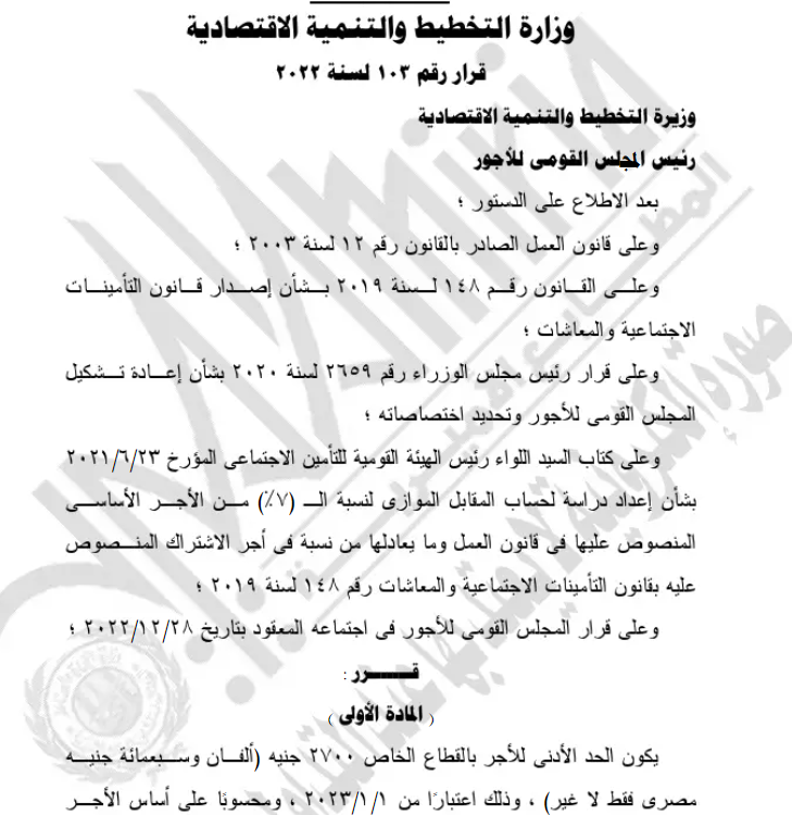 الجريدة الرسمية تنشر قرار اعتماد الحد الأدنى للأجور للقطاع الخاص بـ 2700 جنيه