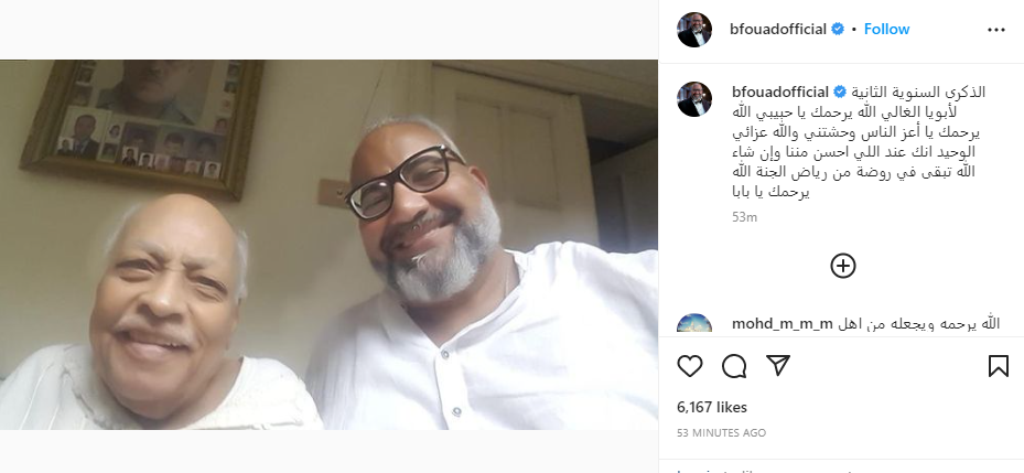 أحيا الفنان بيومي فؤاد، ذكري وفاة والده الثانية، عبر حسابه الشخصي بموقع التواصل الاجتماعي “انستجرام”.