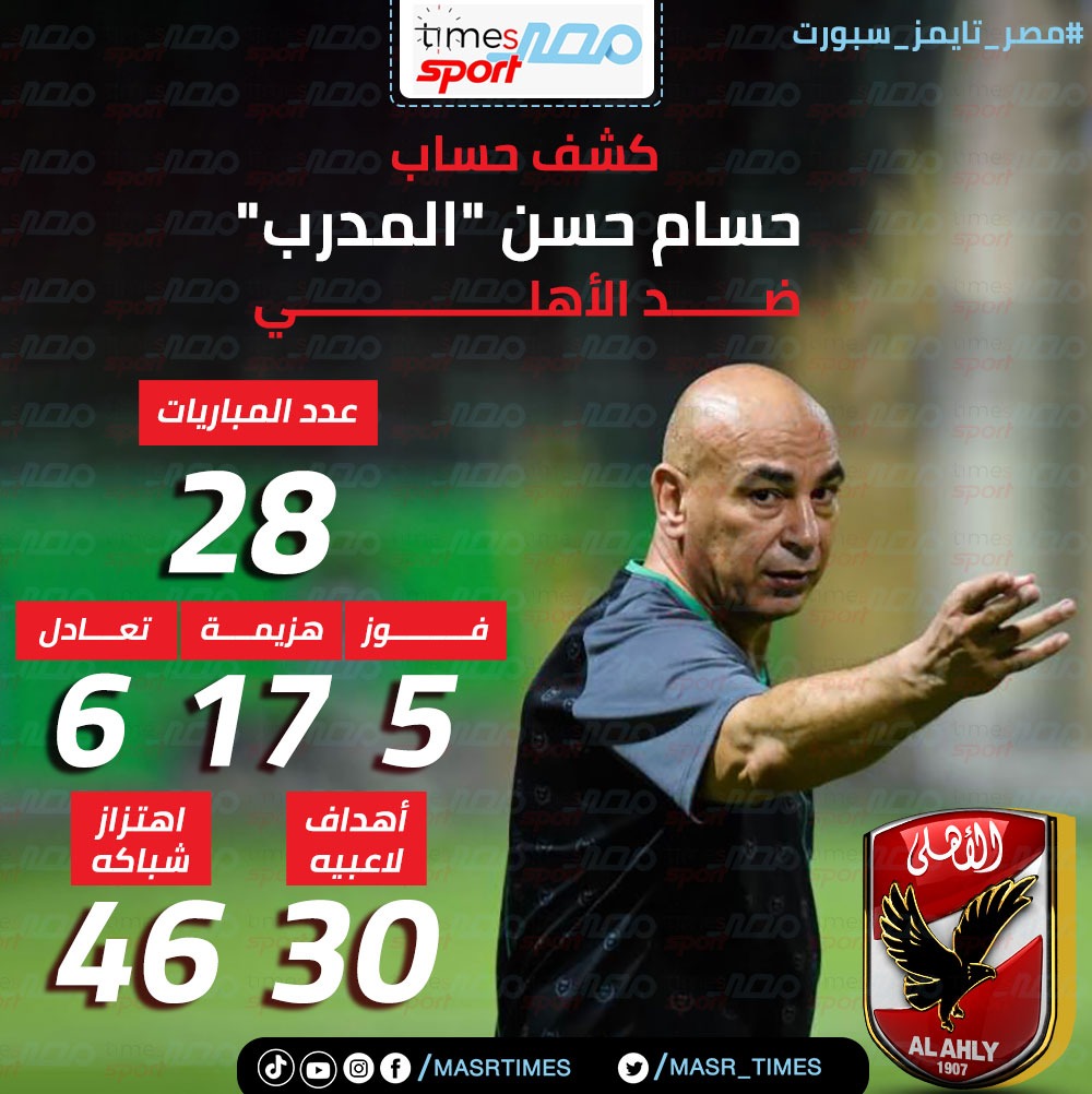 لعب حسام حسن المدير الفني لنادي المصري البورسعيدي ، أمام الأهلي 28 مباراة ، استطاع ان يحقق الفوز في 5 مواجهات ، وتعادل في 6 ، وخسر 17 أخرين ، وخسر السوبر المصري لموسم 2014 بركلات الترجيح امام الاهلي، واليوم يبحث حسام حسن عن الفوز السادس أمام الأهلي في المباراة رقم 29 أمام المارد الاحمر.