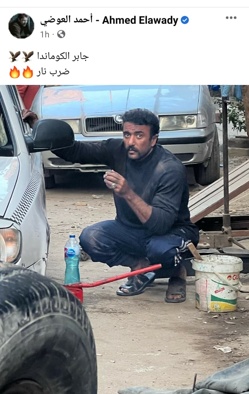 ونشر أحمد العوضي صورة عبر صفحته على موقع التواصل الإجتماعي"الفيسبوك" من الكواليس وعلق عليها قائلا:" جابر الكوماندا ضرب نار، ليتفاعل معه عدد كبير من جمهوره منتظرين العمل الذي يجمعه بياسمين للمرة الثانية.