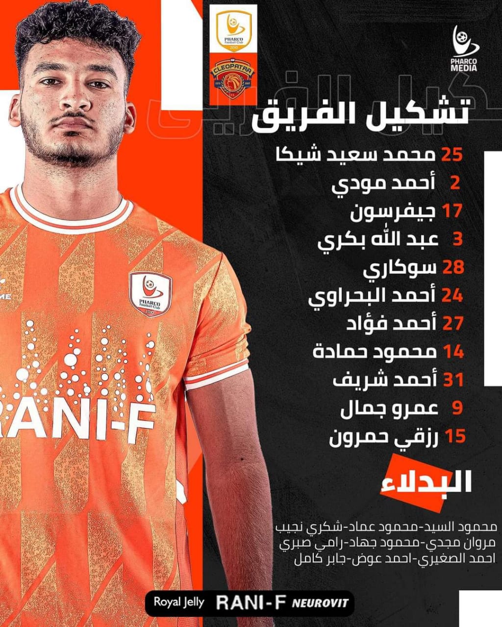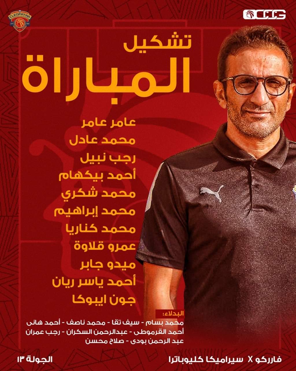 ننشر التشكيل الرسمي لفاركو وسيراميكا كليوباترا اليوم بالدوري المصري
