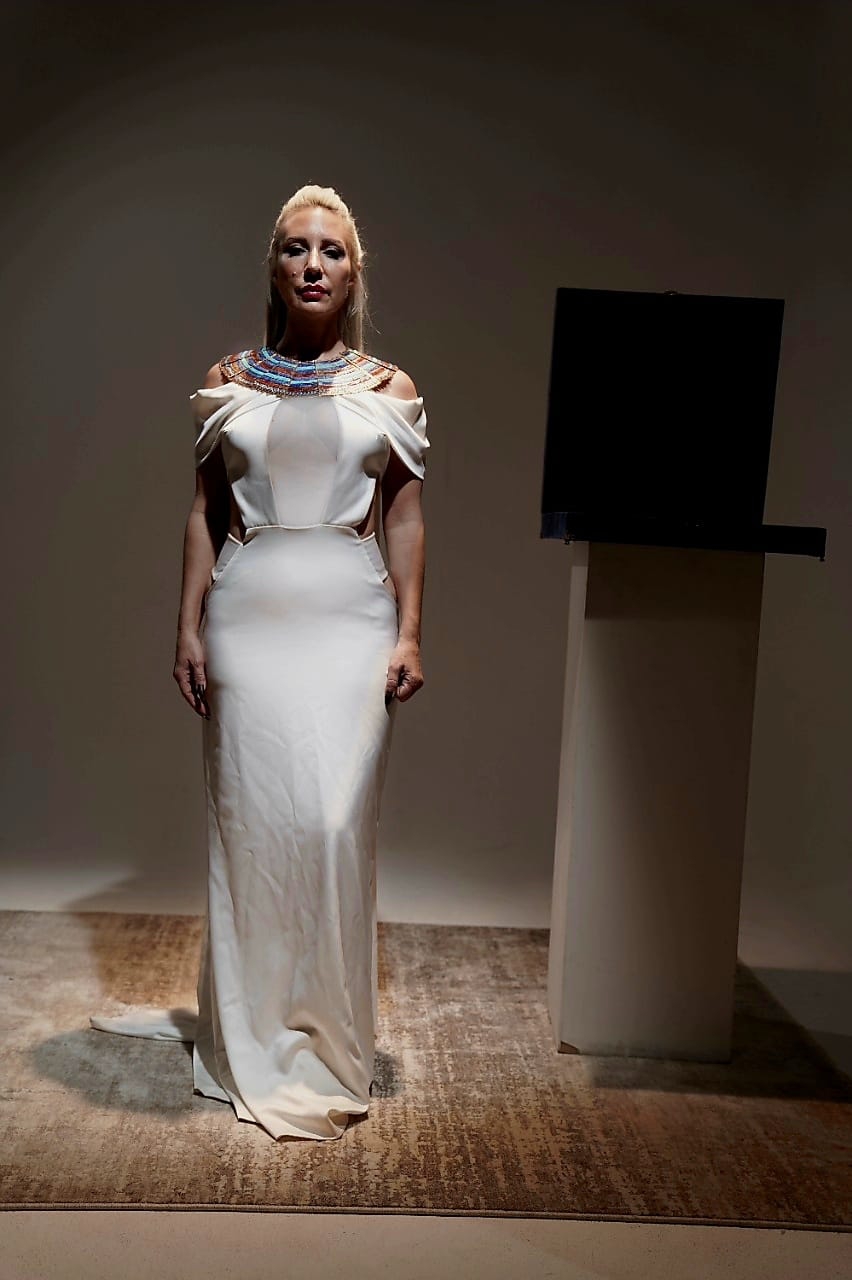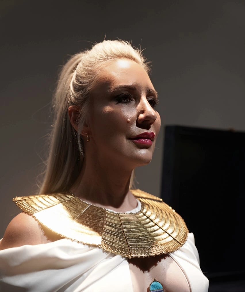 المطربة الأمريكية آمون ستار تخضع لجلسة تصوير مع قلادة توت عنخ آمون (صور)