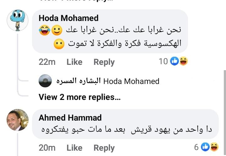 وجاءت في التعليقات أغلبها سلبي يصف التمثال بأنه بشع ويجسد شخصية أبو لهب، كما وصفه البعض بأنه حرام لأنه يجسد الأصنام، وقالوا "تمثال ابو جهل والكفار"، "ابرهه الحبشي"، "دا صنم من أصنام قريش"، "هناك دين جديد في أسيوط؟".
