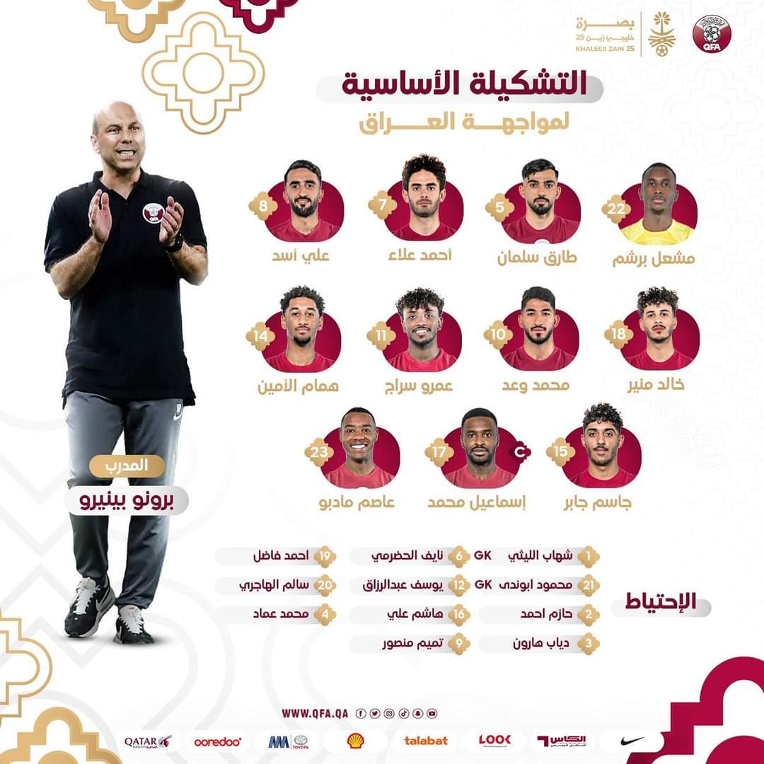 التشكيل الرسمي لمباراة العراق ضد قطر في نصف نهائي كأس الخليج