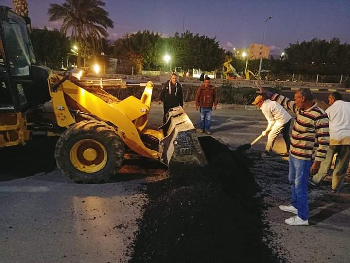 ويشرف على رصف الشوارع بالمدينة ليلا إبراهيم سمير ويتم عمل مطبات عكسية بشارع أحمد حمدى والذى شهد فتح يوترن بأكثر من تقاطع لتسهيل الحركة المرورية.