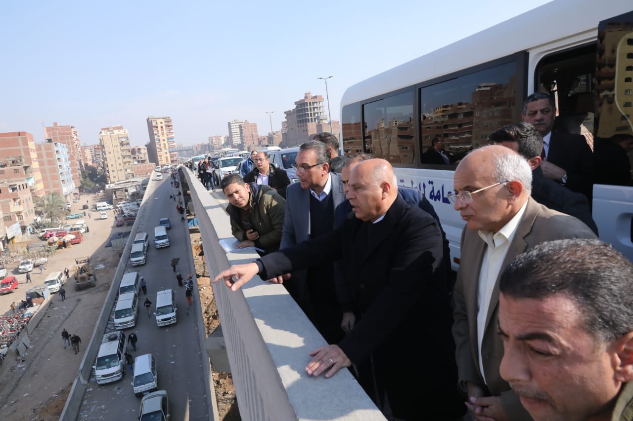 كما تم متابعة موقف أعمال تنفيذ عدد من المحاور المرورية الجديدة الجاري انشاؤها لتسهيل وصول المواطنين للطريق الدائري، محور السكة الحديد (الجزائر) بنطاق محافظة القاهرة في المسافة من تقاطعه مع كوبرى التونسى حتى ميدان العرب، حيث تم الانتهاء من تنفيذ مطالع ومنازل ربط المحور مع الطريق الدائرى وجار أعمال الإحلال وطبقة الأساس فى المسافة من كوبرى التونسى حتى ميدان عزبة الورد وأكد الوزير على ضرورة استمرار التنسيق مع محافظ القاهرة لسرعة ازالة التعديات على حرم السكة الحديد لاستكمال الأعمال بالمحور، فى المسافة من عزبة الورد حتى ميدان العرب بالإضافة إلى متابعة أعمال المرحلة الأولى لمحور المريوطية على البرين الشرقى والغربى لمصرف المحيط بطول 20 كم، والذى يربط الطريق الدائري بالطريق الدائري الأوسطي، ويعدُ من أهم المحاور المرورية التي تخدم حركة النقل بنطاق محافظة الجيزة، و أكد الوزير تكثيف الأعمال لسرعة الانتهاء من تطوير تقاطع محور المريوطية مع الطريق الدائرى والانتهاء من المطلع الذى تم استحداثة للقادم من البدرشين متجها لوصلة المريوطية وصفط اللبن.