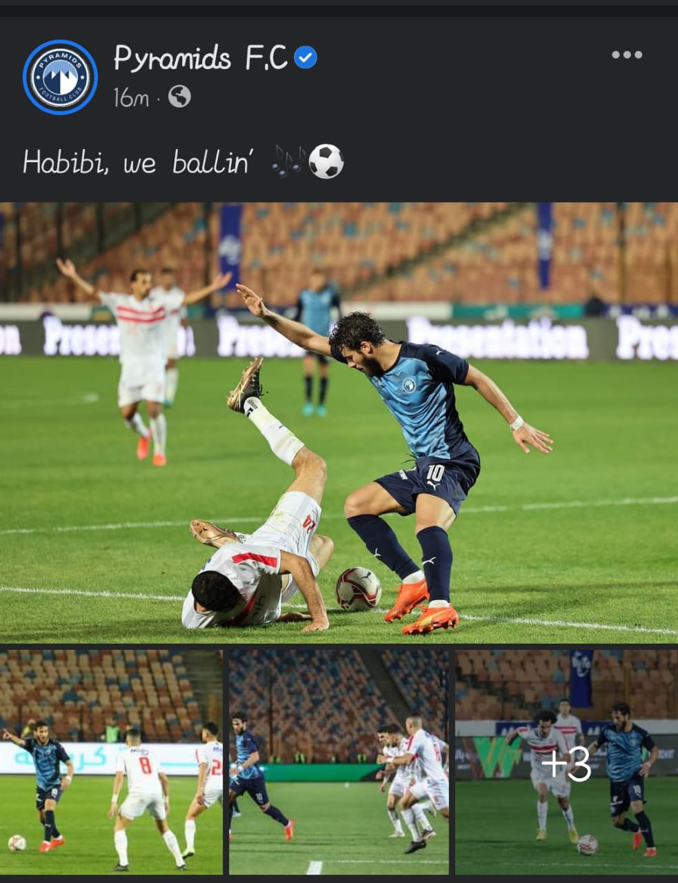 ونشر الموقع الرسمي لنادي بيراميدز صوراً من اللقاء معلقاً :"Habibi, we ballin"، وهذه الجملة جاءت من أغنية طرحها مغنى الراب "ويجز" عبر قناته على يوتيوب بعنوان "بعودة يا بلادى" من فيلم كباتن الزعترى، الذي تدور أحداثه حول صديقين يعيشان في "مخيم الزعتري" للاجئين في الأردن، ولديهما حلم لا يموت في أن يصبحا لاعبي كرة قدم محترفين، بينما يواجهان الواقع الصعب في حياتهم.
