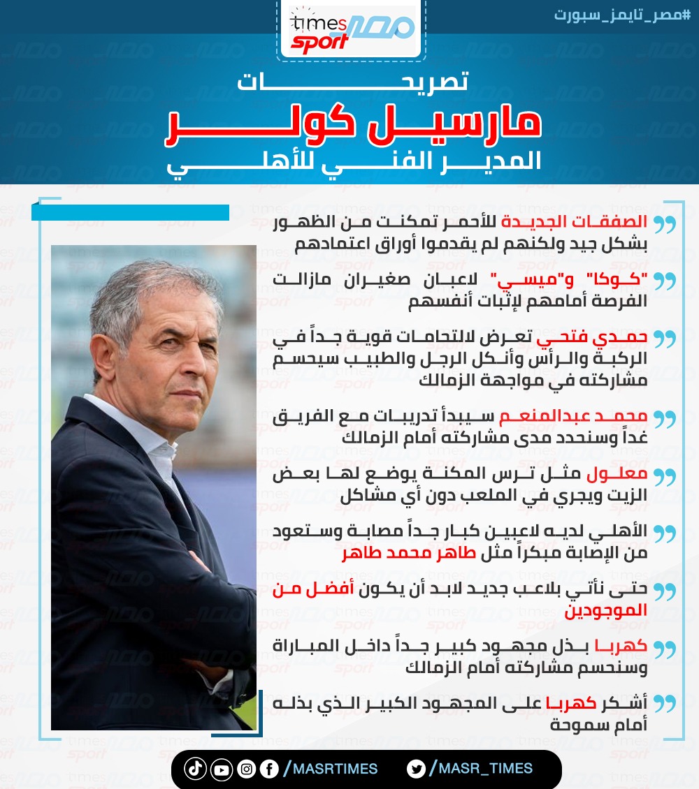 أعرب السويسري مارسيل كولر المدير الفني للفريق الأول لكرة القدم بنادي الأهلي، عن سعادته عقب فوز فريقه على سموحة، وتأهل الأحمر إلى نهائي كأس مصر".