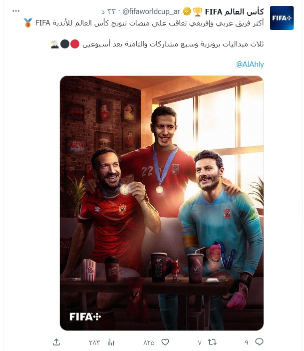 ونشر الموقع الرسمي للفيفا عبر موقع التواصل الإجتماعي توتير صوراً للفريق معلقاً :"أكثر فريق عربي وإفريقي تعاقب علي منصات تتويج كأس العالم للأندية ، ثلاث ميداليات برونزية وسبع مشاركات والثامنة بعد أسبوعين "