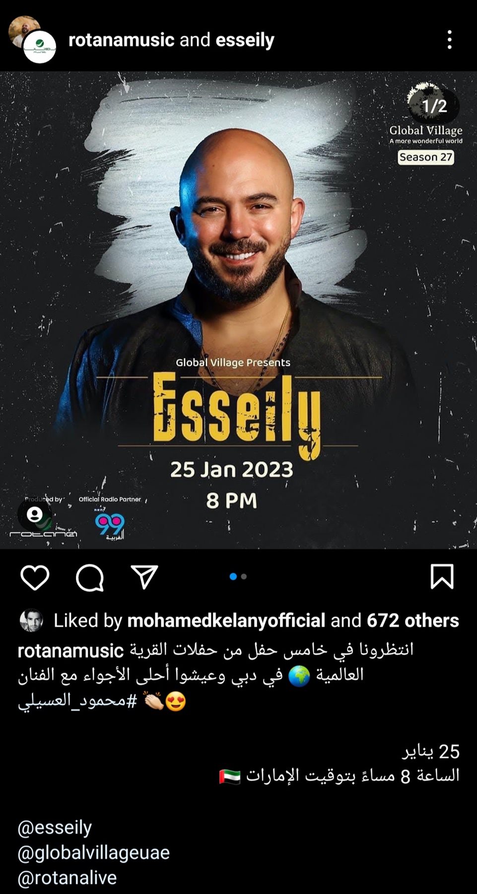 وعلقوا على الصورة: “انتظرونا في خامس حفل من حفلات القرية العالمية فى دبى وعيشوا أحلى الأجواء مع الفنان محمود العسيلي”.