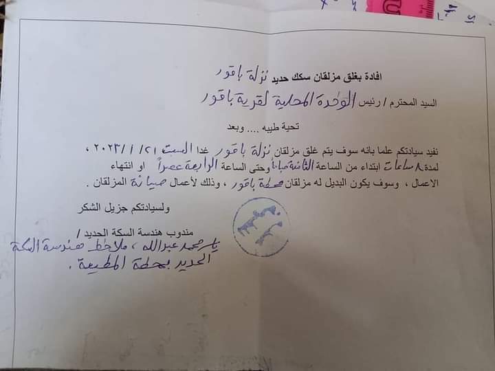 وفي سياق متصل فقد أعلنت الوحدة المحلية بقرية باقور التابعة إلى مركز أسيوط، عبر صفحتها الرسمية على موقع التواصل الاجتماعي فيسبوك، غلق مزلقان نزلة باقور لمدة 8 ساعات، اليوم السبت.