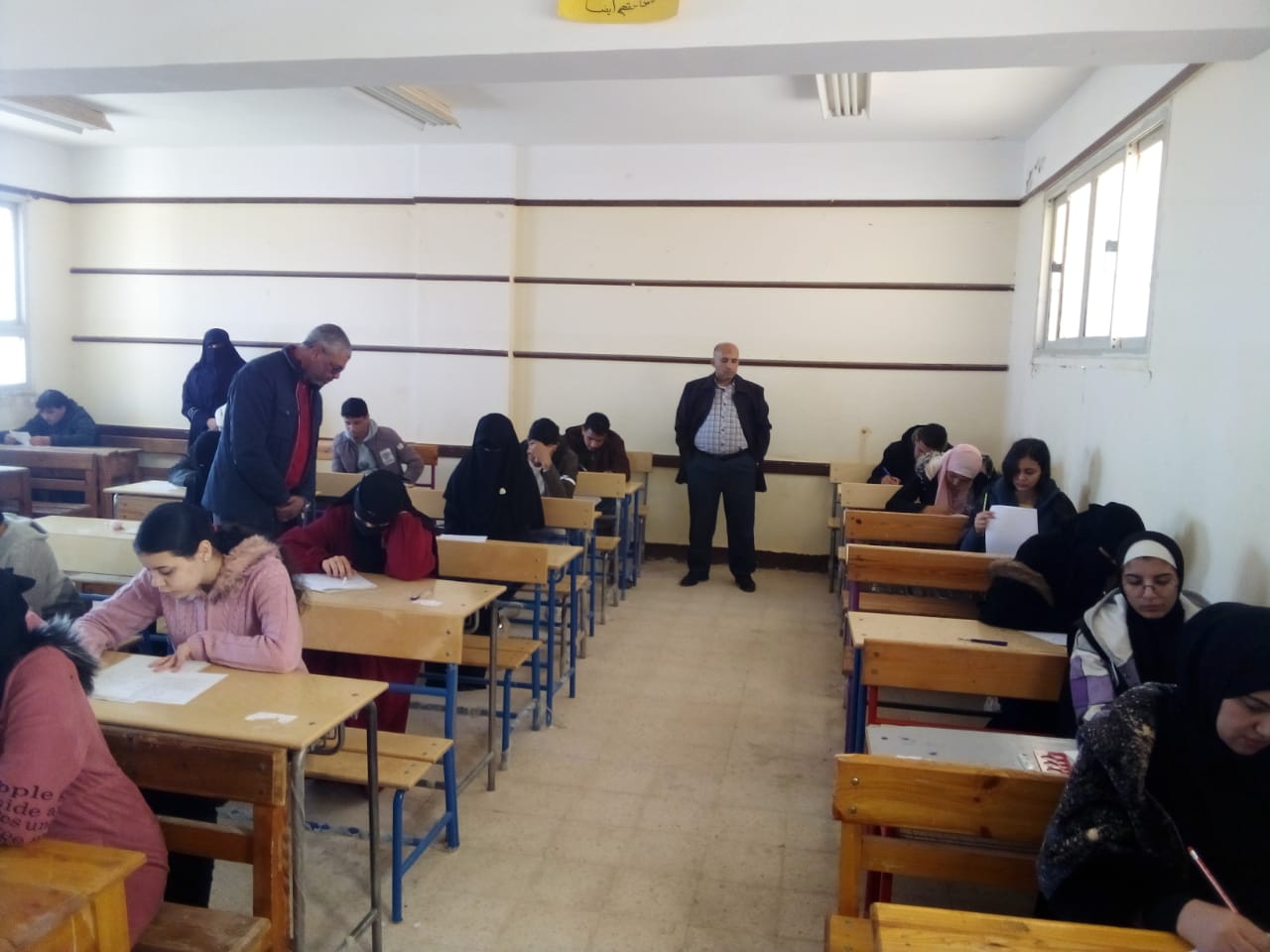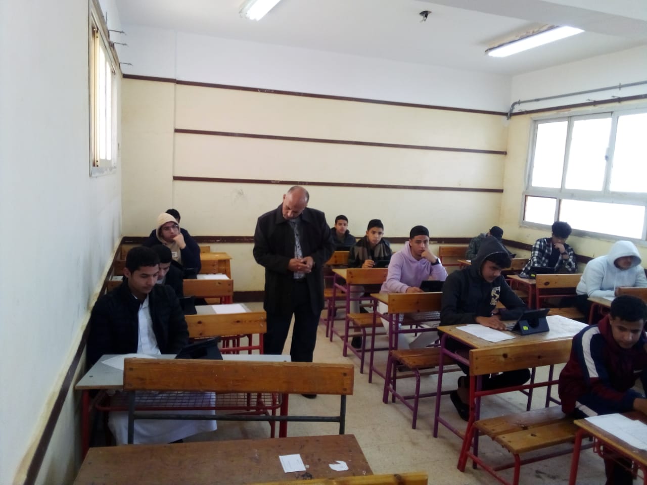 وتابع سير الامتحانات وسط أجواء هادئة حيث جاءت أسئلة الامتحان واضحة وخالية من الغموض وفي مستوي الطالب وشاملة جميع فقرات المنهج وبما يحقق الوزن النسبي للورقة الامتحانية .