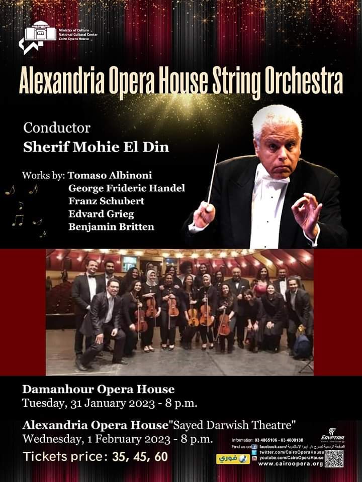 صرح المايسترو شريف محي الدين - مدير عام دار أوبرا دمنهور، أن دار الأوبرا المصرية برئاسة د. مجدي صابر ستنظم حفلاً فنياً تحييه فرقة أوركسترا وتريات أوبرا الإسكندرية بقيادة المايسترو شريف محيي الدين في الثامنة مساء الثلاثاء 31 يناير على مسرح أوبرا دمنهور.