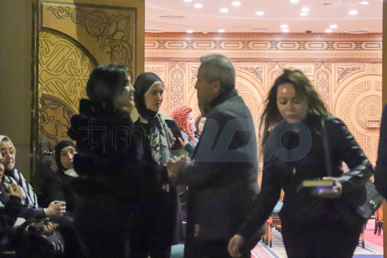 الحزن يسيطر على المطربة مى فاروق فى عزاء والدها