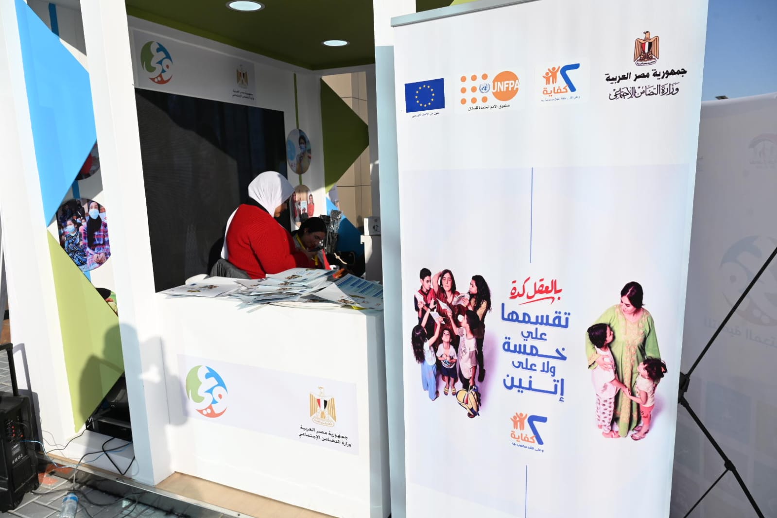 كما يتضمن جناح وزارة التضامن الاجتماعي استعراض جهود المشروع القومي للحفاظ على كيان الأسرة المصرية " مودة" والذي يعمل على تأهيل المقبلين للزواج، بالإضافة إلى جهود مشروع الحد من الزيادة السكانية بين الأسر المستفيدة من مشروع "2 كفاية"، وجهود صندوق مكافحة وعلاج الإدمان والتعاطي، بالإضافة إلى معروضات "ديارنا" لعدد من الأسر المنتجة، والتي تتميز كونها جزءاً أصيلًا من التراث وعراقة الصناعة، خاصة أن عدد مراكز الأسر المنتجة يزيد على 400 مركز و14 ألف أسرة منتجة.