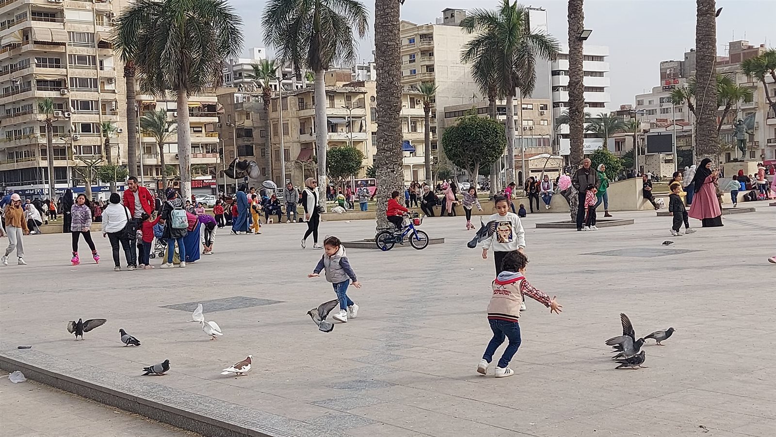 شهدت ساحة الشهداء "ميدان المسلة"، اليوم، توافد عدد من اتوبيسات الرحلات ، وذلك للاستمتاع برؤية المشهد الأوروبي الذي تتمتع به ساحة الشهداء وهو تجمع المئات من حمام السلام وسط المواطنين، والذي يجعل من ساحة الشهداء على غرار أوروبا، مع الأجواء الشتوية الرائعة بمحافظة بورسعيد.
