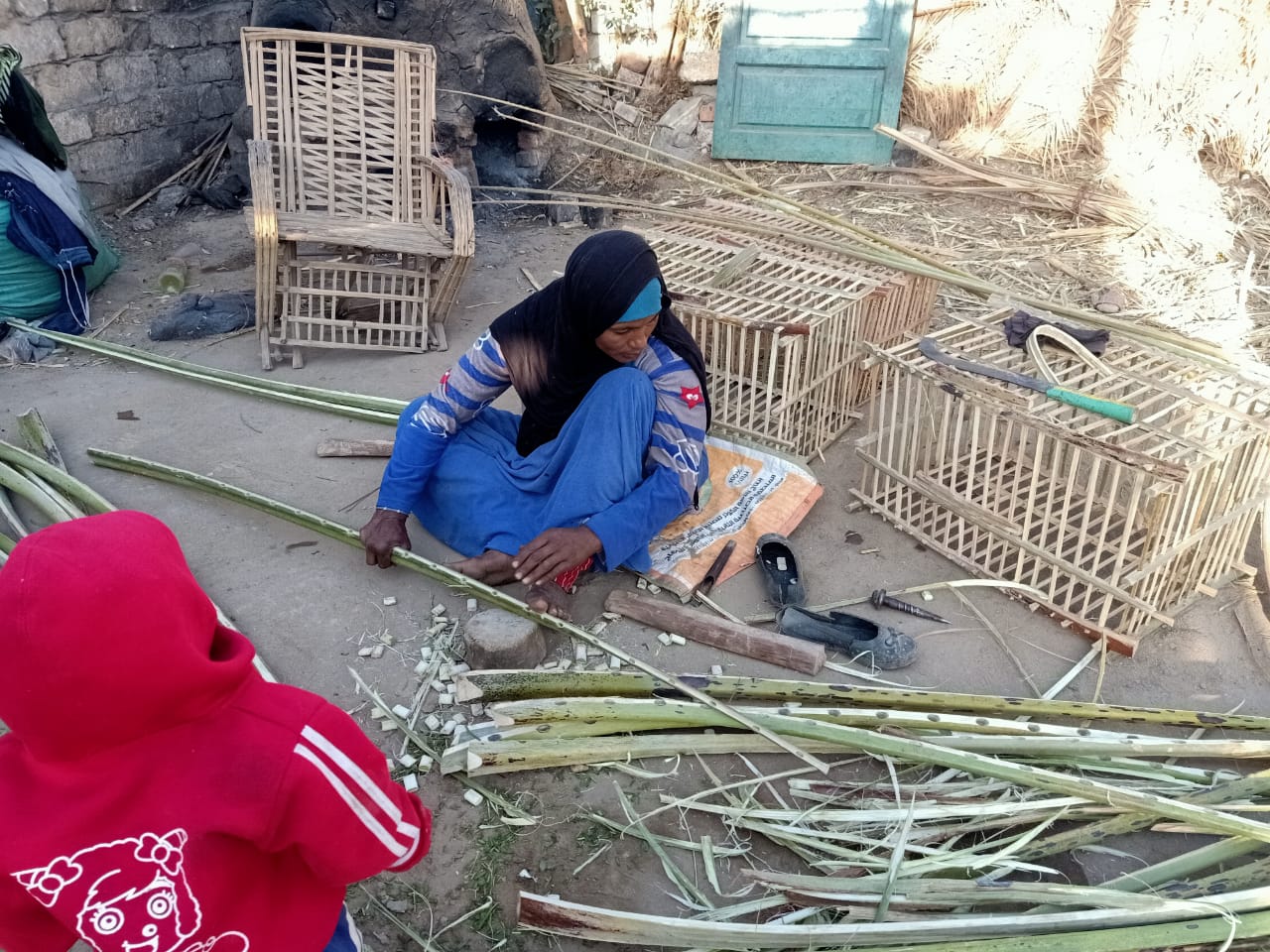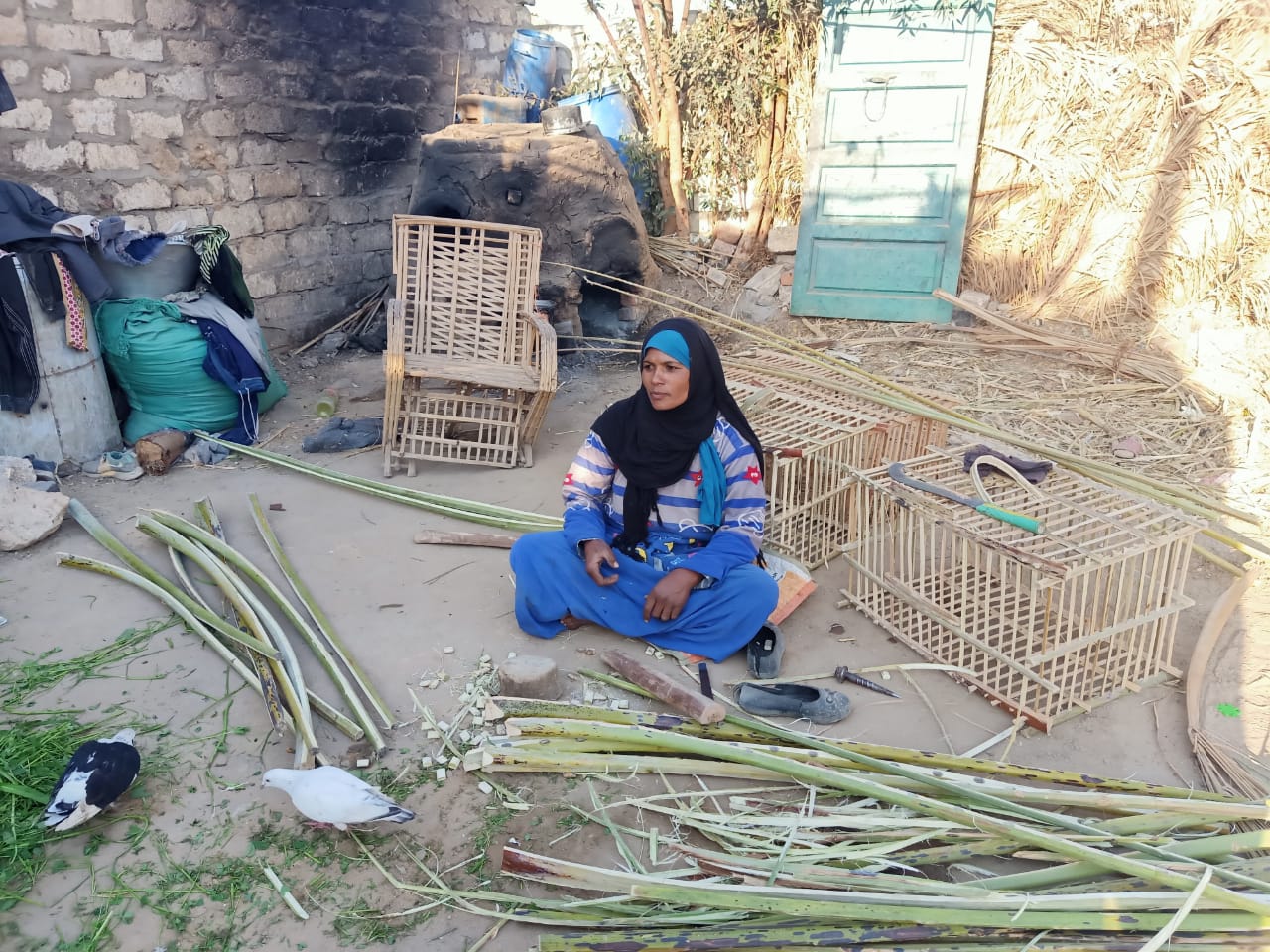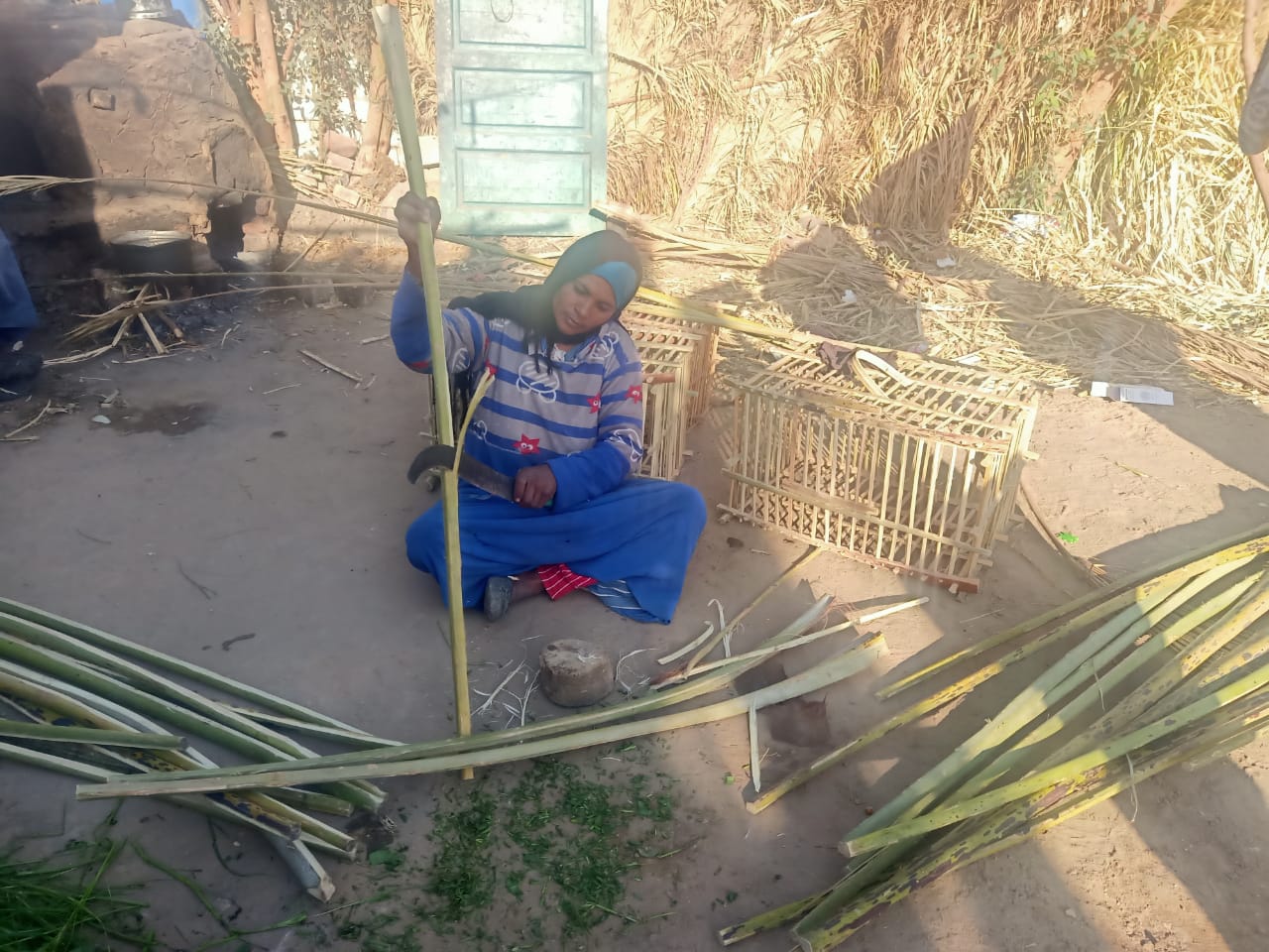معاناتها ليس فقط في المهنة الشاقة التي احترفتها لتكون مصدر رزقها في الحياة رغم أنها مشهورة بمهنة الرجال، بل معاناتها الحقيقية في أطفالها الذين تقترب منهم الأمراض تدريجيًا وليس في استطاعتها علاجهم وفي منزلها المعرش منه غرفتين بالخشب والمتبقي سور من قلوح القصب، فلا تسلم من قرصات الشتاء الباردة، حياة صعبة مريرة تعيشها الأسطى تفاحة صانعة الأقفاص من جريد النخيل في قنا.