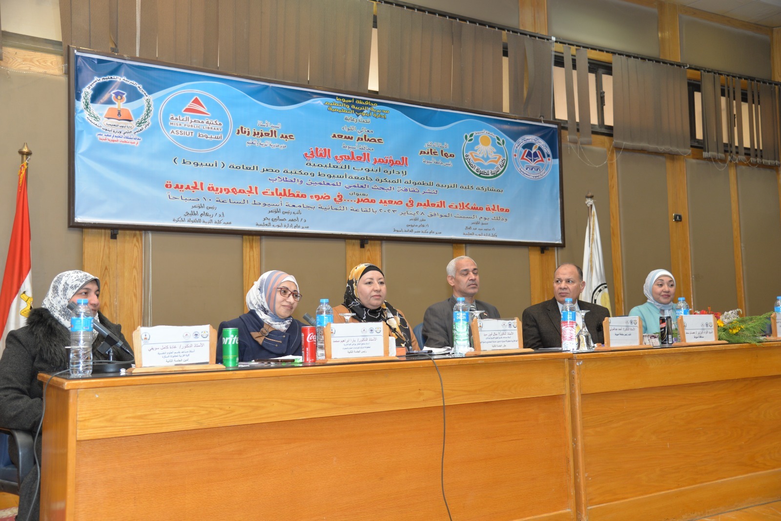 حيث بدأت فعاليات المؤتمر بالسلام الجمهورى ثم الاستماع الى أيات من القران الكريم ثم كلمات الترحيب من الدكتورة ريهام المليجى عميد كلية التربية للطفولة المبكرة ،والدكتور احمد حسنين بحر مدير ادارة ابنوب التعليمية وهاجر محروس مدير مكتبة مصر العامة باسيوط .