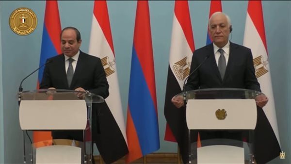 وأضاف الرئيس السيسي، خلال مؤتمر صحفي مشترك مع نظيره الأرميني: "يطيب لي وخالص الشكر على كرم الضيافة وحسن الاستقبال منذ وصول إلى أرض أرمينيا الصديقة، لافتا إلى أن المباحثات المشتركة مع الرئيس الأرميني كانت مثمرة، وقد تطرق إلى الطفرة التي حققتها مصر في مجال إنتاج الطاقة والغاز والاستراتيجية الوطنية للهيدروجين الأخضر، بما يجعلها مقصداً مهماً للاستثمار، واتفاقيات للتجارة الحرة مع الدول العربية والأفريقية.