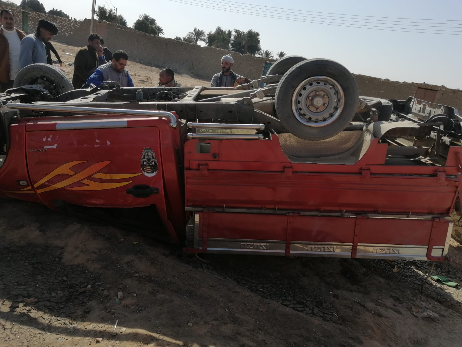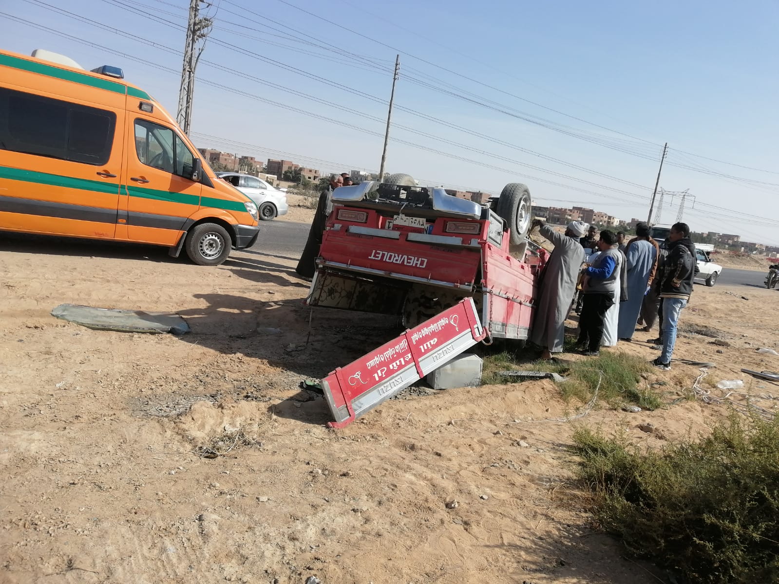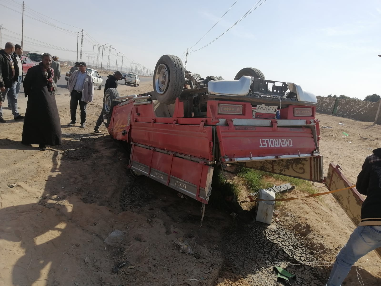 إصابة 3 أشخاص في انقلاب سيارة ربع نقل على "صحراوي قنا" (صور)