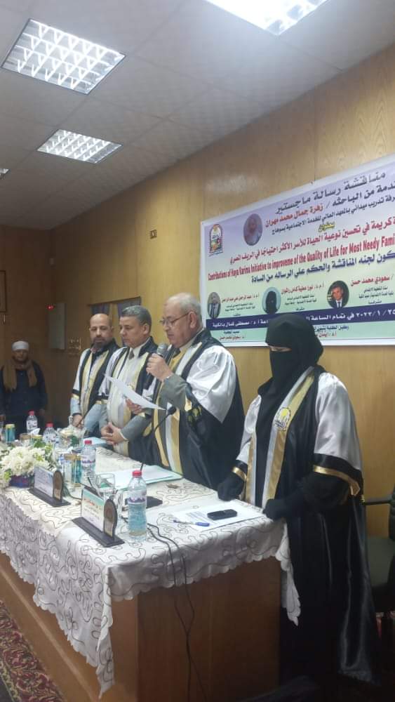 جاء ذلك في أعقاب مناقشة رسالة ماجستير في مجال الخدمة الاجتماعية بقسم التخطيط الاجتماعى تحت عنوان إسهامات مبادرة حياة كريمة فى تحسين نوعية الحياة للأسر الأكثر احتياجا فى الريف المصرى، و المقدمة من الباحثة زهرة جمال محمد مهران بقسم التخطيط الاجتماعي بكلية الخدمة الاجتماعية، وذلك بحضور الدكتور أحمد محمد يوسف عليق أستاذ التخطيط الاجتماعي بكلية الخدمة الإجتماعية بجامعة حلوان "مناقشا ورئيسا"،والدكتور سعودى محمد حسن أستاذ التخطيط الإجتماعى وعميد كلية الخدمة الإجتماعية بجامعة أسيوط "مشرفا"، والدكتور عبد الرحمن على عبد الرحمن أستاذ التخطيط الإجتماعى المساعد بكلية الخدمة الإجتماعية جامعة أسيوط "مناقشا"، و الدكتورة نورا عطية كامل رشوان أستاذ التخطيط الاجتماعي المساعد بكلية الخدمة الاجتماعية جامعة أسيوط "مشرفا " .