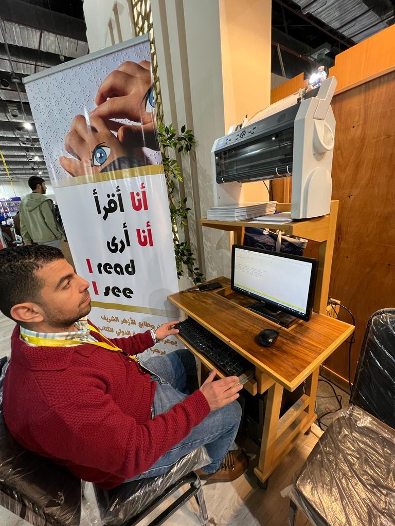 وأوضح وليد الشامي، عضو مطابع الأزهر، أن مطابع الأزهر استحدثت الطباعة بمنظومة برايل لخدمة كافة ذوي القدرات الخاصة من المكفوفين، وأنهم شاركوا هذا العام بمبادرة " أنا أقرأ.. أنا أرى"، لرسم البسمة على وجوه ذوي القدرات الخاصة من المكفوفين من خلال عمل هدايا تذكارية تحمل أسمائهم وأسماء من يحبون، وكتابة مقولة لدكتور أحمد الطيب، شيخ الأزهر:" إن المعرفة هي أعز ما يطلب وهي أول واجب على العقلاء وهي تراث الأنبياء كما قال نبي الإسلام ﷺ : "إن الأنبياء لم يورثوا دينارا ولا درهما، إنما ورثوا العلم".