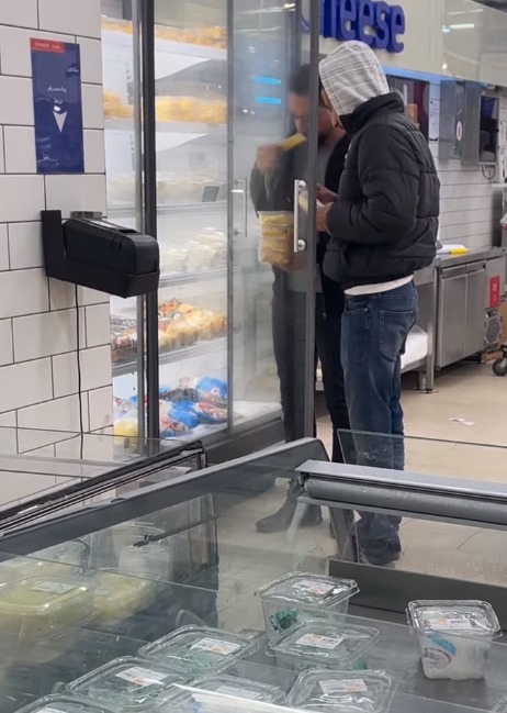 "بيشموا الجبنة الرومي ويرجعوها التلاجة".. فعل غريب من شخصين داخل فرع كارفور بألماظة