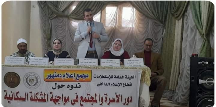 نظم مركز إعلام دمنهور برئاسة أميرة الحناوي بالتعاون مع جامعة دمنهور والوحدة المحلية لمركز ومدينة حوش عيسى ( الإدارة التعليمية وإدارة الأوقاف ) ندوة توعوية حول ( دور الأسرة والمجتمع فى مواجهة المشكلة السكانية ) بقاعة نادى المعلمين.