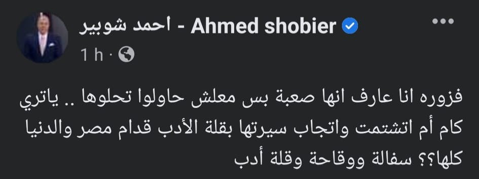 وكتب الإعلامي أحمد شوبير، "فزوره أنا عارف انها صعبه بس معلش حاولوا تحلوها .. يا ترى كام أم اتشتمت واتجاب سيرتها بقلة الأدب قدام مصر والدنيا كلها؟؟ سفالة ووقاحه وقلة أدب".