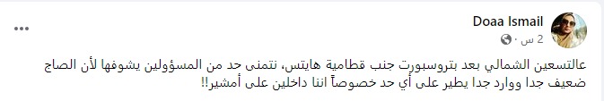 وقالت متداولة الصورة على جروبات السوشيال ميديا" عالتسعين الشمالي بعد بتروسبورت جنب قطامية هايتس، نتمنى حد من المسؤولين يشوفها لأن الصاج ضعيف جدا ووارد جدا يطير على أي حد خصوصاً اننا داخلين على أمشير!!".