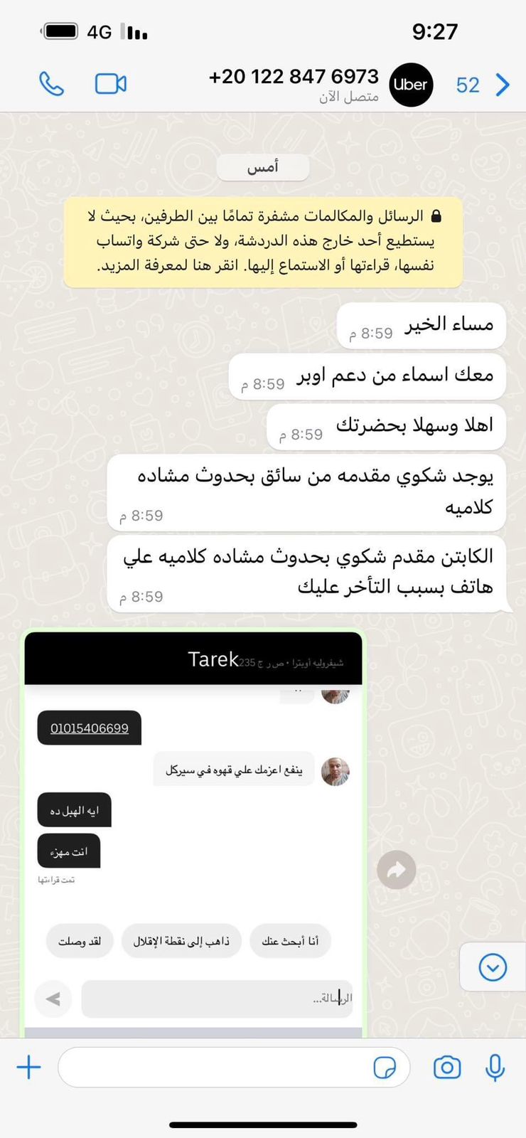 كشفت سيدة عن تعرضها لمضايقات من سائق أوبر أثناء طلبها رحلة ، قائلة " uber ازفت شركة في مصر متخيل هو ده الكابتن اللي المفروض تخلص رحلتك معاه وانت مأمن ع نفسك وع ولادك اييييييييييه ده بجد هو ازاي الناس بتنسي تربي اوي كده هو في وساخة بالدرجة دي ياجدعان انا حاسة اني ف فيلم هندي والله الاستاذ طلبت اوبر ونازلة انا وولادي عندي مشوار طلب الرقم بعتهوله عادي بقا اوبر وامان وكده يعني كان رده اني اشرب قهوة معاه الأخ عملنا ميتنج مفاجئ تقريبا طبعا رديت ولغيت الرحلة وطلبت رحلة تانية والدنيا تمام ..المفاجئة بقا انه يعمل اكونت يحط عليه لوجو شركة اوبر ويدخل يكلمني انه من الدعم الفني بتاع شركة اوبر وانه اتقدم فيا شكوي وانه جاي يحلها لا بجد هو انت اهلك كانو فين وانت بتتربي ايه الجبروت والقدر ف الوساخة ده ياأخي وطبعا هكر الاكونت وحط رقمي ع اكونت اوبر دولي ومن الساعة 3 الفجر المكالمات بتبدأ من كباتن اوبر واعرفهم المشكلة يلغو الرحلة وطبعا اروح لكابتن تاني ويفضل الفون يرن من الفجر لتاني يوم وللاسف دعم أوبر زي الزفت ومش عارفة أوصل لحد خالص في الشركة".