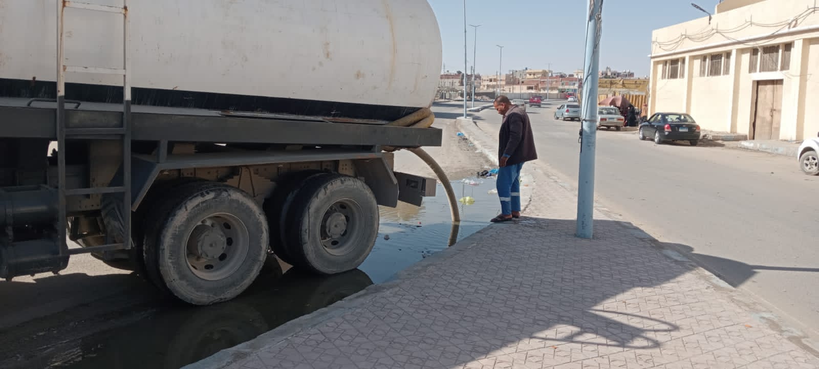 تنفيذا لتوجيهات اللواء خالد شعيب محافظ مطروح بسرعة التعامل مع تجمعات مياه الأمطار بنطاق المدينة.
