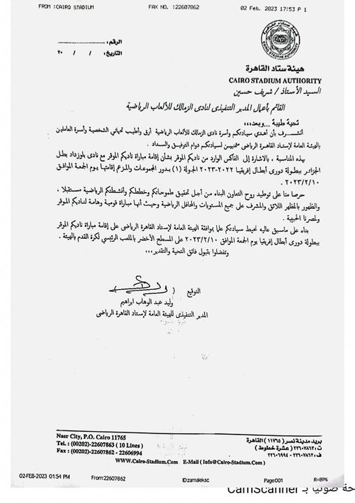 رسمياً.. استاد القاهرة يستضيف مباراة الزمالك وشباب بلوزداد بدوري أبطال افريقيا