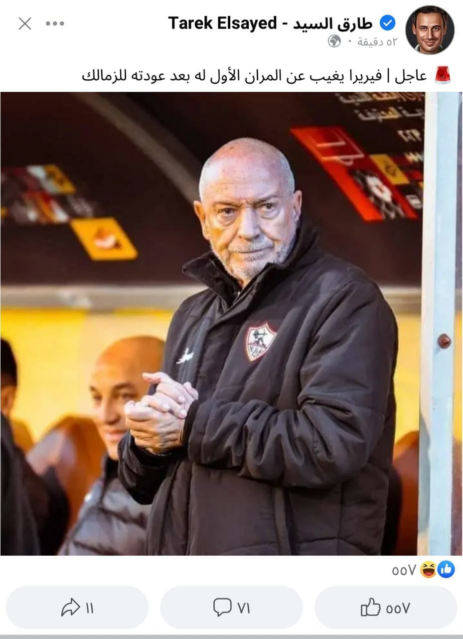 وقد اعلن إعلان مرتضى منصور عن رحيل البرتغالي جوسيفالدو فيريرا عن تدريب الزمالك بعد مباراة الأبيض مع غزل المحلة ، الذي حسمها زعيم الفلاحين بهدفين مقابل هدف للأبيض.