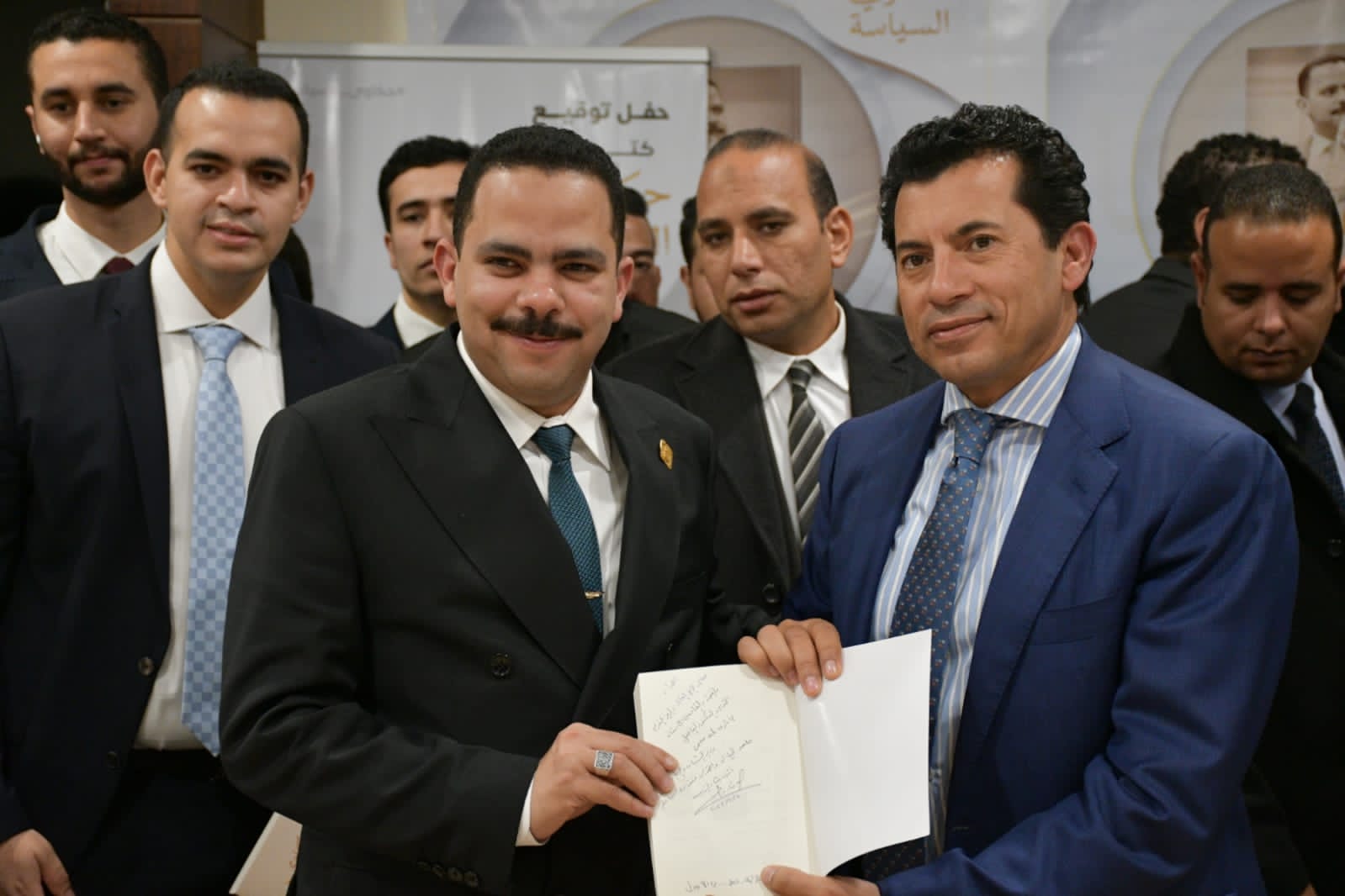 علي هامش زيارته حضر الوزير حفل توقيع النائب المهندس أشرف رشاد، والنائب الدكتور محمود حسين رئيس لجنة الشباب والرياضة بمجلس النواب.