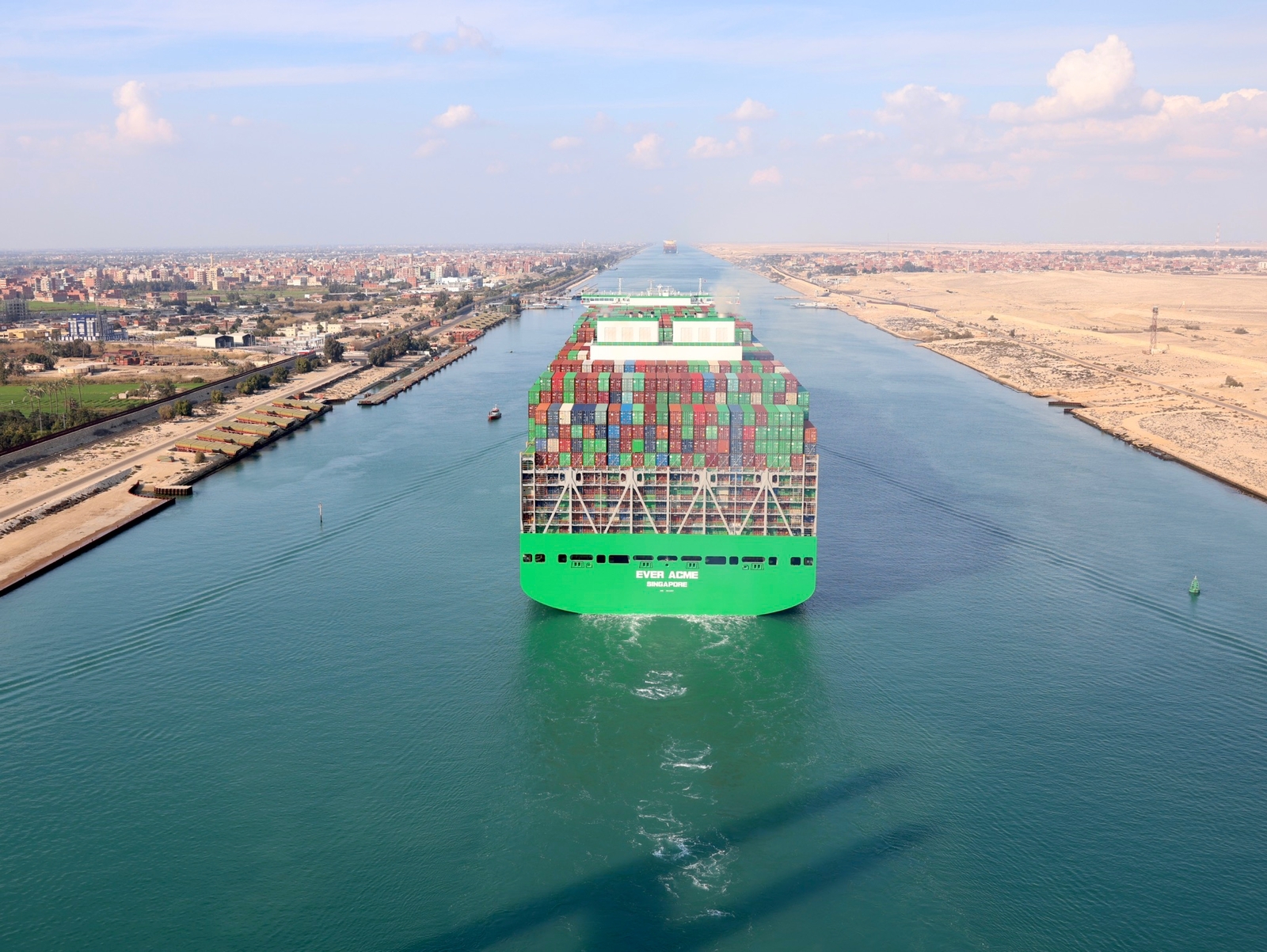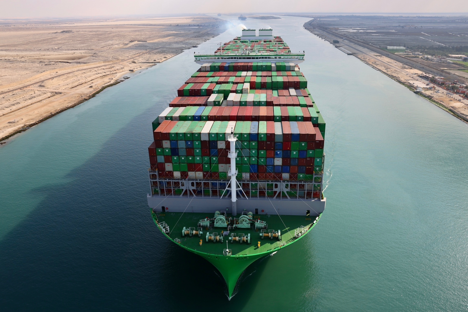 أحدث سفينة حاويات في العالم تعبر قناة السويس بنجاح في أولى رحلاتها البحرية