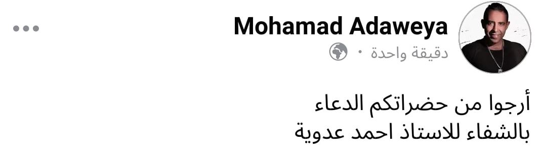 وأوضح محمد عدوية، أنه سيقاضي منتحل شخصيته على موقع التواصل الاجتماعي "فيسبوك"، حيث قام شخص بانتحال حساب باسمه، ونشر : "أرجوا من حضراتكم الدعاء بالشفاء للاستاذ أحمد عدوية".