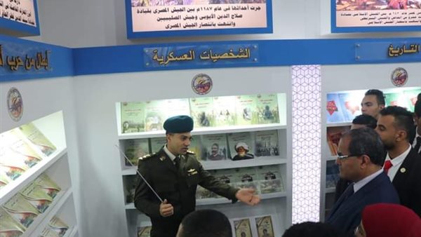 وأوضح رئيس الجامعة انه خلال زيارة الجناح الخاص بوزارة الدفاع تم تعريف الطلاب بالتراث العسكري، والشخصيات العسكرية المختلفة، وأبطال من حرب اكتوبر، الي جانب استعراض انجازات الجيش المصري خلال العصور الفرعونبة، والإسلامية وبالعصر الحديث، مشيداً بجهود الوزارة في نشر العلوم والمعرفة العسكرية والمدنية من خلال إصدارات القوات المسلحة التى تتناول التاريخ العسكرى المصرى العريق .