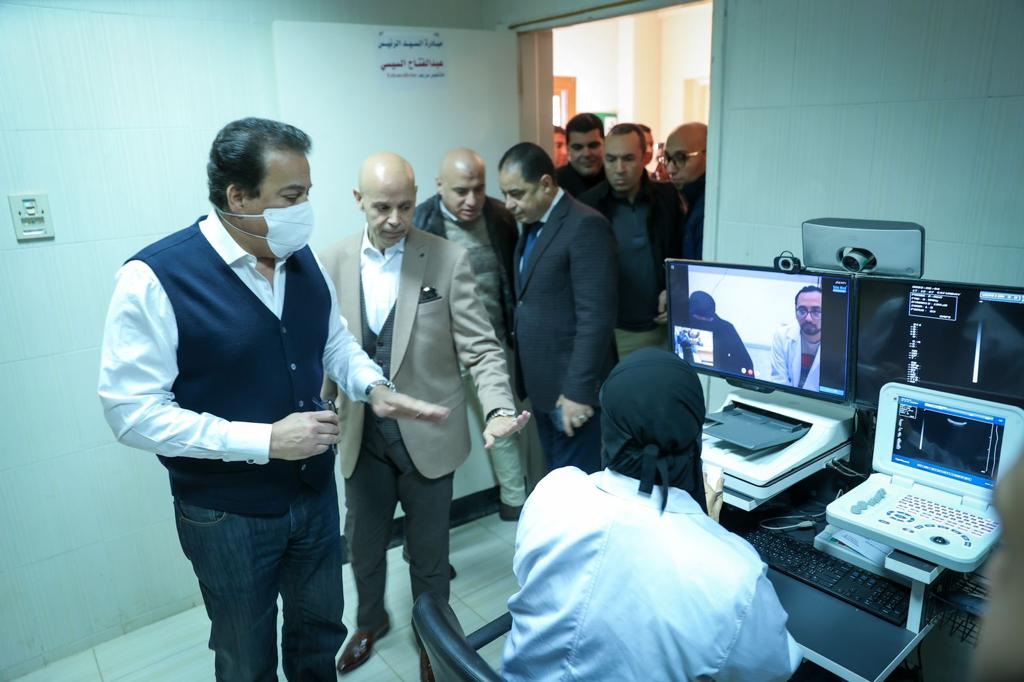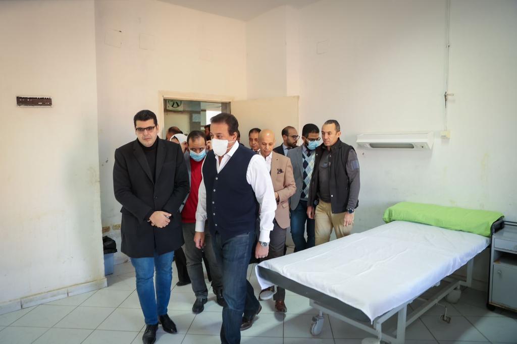 وتابع أن الوزير تفقد أقسام (إنعاش القلب، الجراحات البسيطة، الاستقبال، وحدة الكلى الجديدة، التعقييم المركزي) حيث وجه بإعداد خطة للتوسع في استغلال المساحات الفضاء بالمستشفى، وبناء مباني جديدة وفقا لأحدث المعايير العالمية، بما يساهم في تحقيق أكبر تغطية صحية، كما وجه برفع كفاءة منطقة انتظار المرضى، مضيفا أن الوزير اطلع على ملفات المرضى، ومعدلات التردد على الأقسام المختلفة، وكذلك الحالات التي تم مناظرتها من خلال مبادرة التشخيص «عن بعد» والبالغ عددهم 560 مريض حتى الآن.