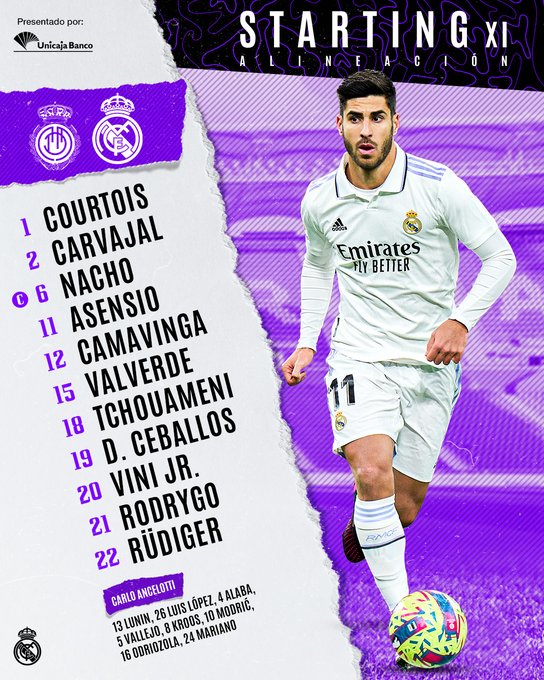 خط الهجوم: ماركو أسينسيو ، فينيسيوس جونيور ، رودريجو ، ماريانو دياز.