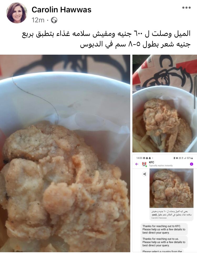 وتفاعل عدد كبير مع الشكوي وقالت سيدة أخري ،" كنتاكي في مصر مش ادمي اصلا يا جماعة والله معرفش الناس مصممة تاكل منه ليه".