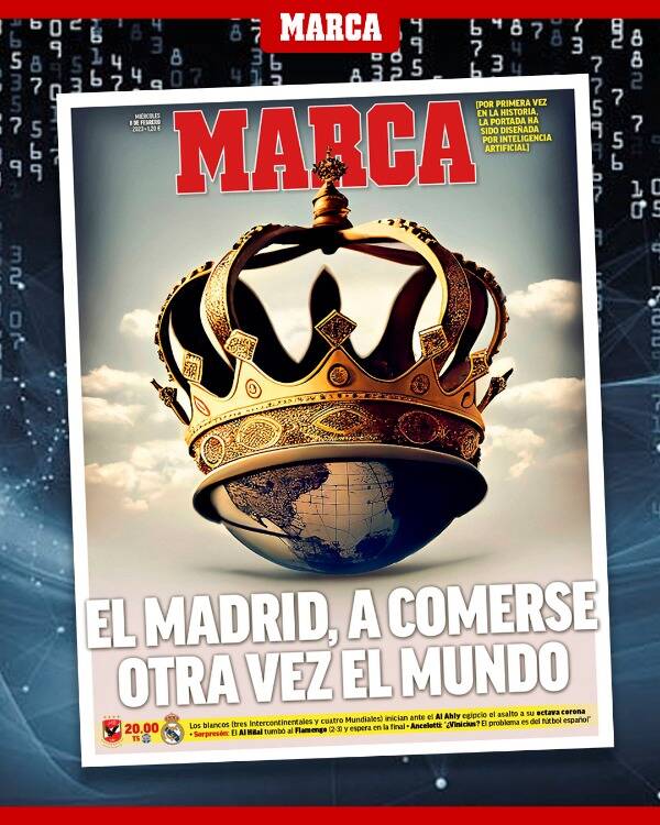 البداية مع صحيفة "ماركا" التي عنونت: "مدريد للسيطرة على العالم مرة أخرى.. سيلعب الفريق الأبيض المتوج بكأس إنتر كونتننتال 3 مرات، وكأس العالم للأندية 4 مرات، ضد الأهلي ليواصل السير نحو اللقب القاري الثامن".